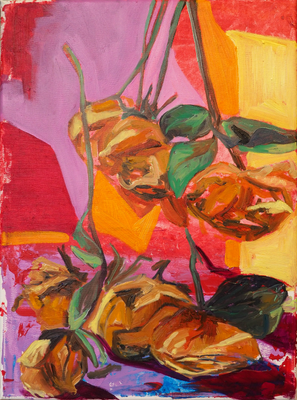 De tijd baart rozen, acryl en olieverf op doek, 30 x 40 cm, 2023