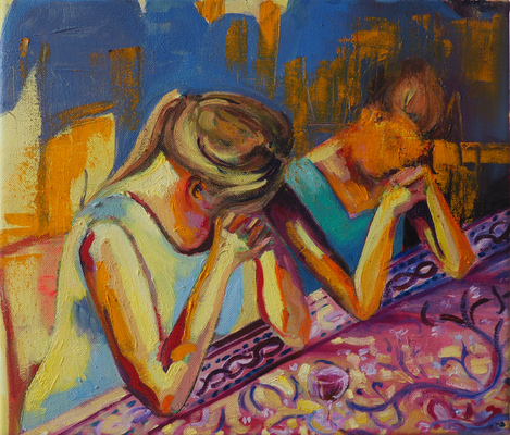 Sociale verplichtingen, acryl en olieverf op doek, 2023, Privé Collectie