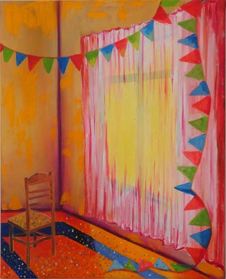Helaas er komt weer licht door de ramen, acryl en olieverf op doek,90 x 70 cm, 2023, Kunst in huis collectie